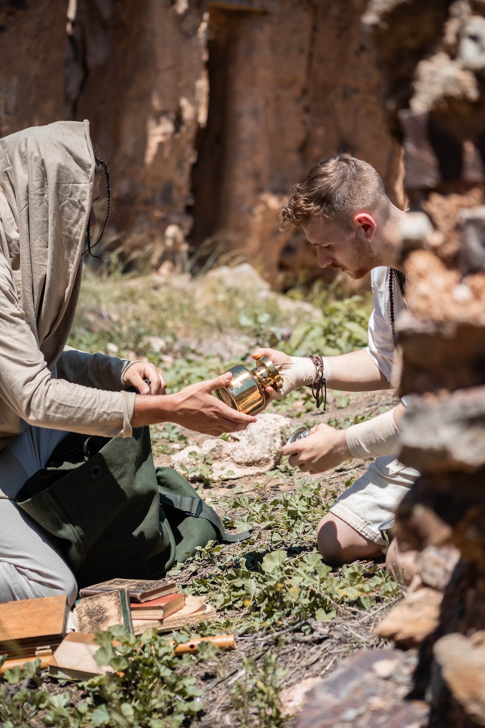 Pour le contexte, je suis chanteuse dans “Kadeus” et, début 2023, nous avons voulu planifier un clip pour notre prochaine musique. Nous avons d’abord écrit le pitch avec Elio Brandolini, le producteur du groupe, puis nous nous sommes tournés vers François Verreyt, réalisateur et filmmaker avec qui nous avions déjà l’habitude de travailler. Dès février, il a fallu tout organiser et créer le dossier de préproduction, essentiel pour la suite. Après avoir finalisé le scénario et ce dossier, comprenant notamment les lieux de chaque scène, j’ai pris en charge les réservations : billets d’avion et Airbnb pour l’équipe. Pour les costumes, nous avons fait appel à un costumier qui les a confectionnés sur mesure, afin de garantir une cohérence avec notre univers visuel. Pour les accessoires, il a fallu les dénicher en ligne, mais aussi dans des lieux tels que l’Armée du Salut. Enfin, comme il n’était pas possible de faire du repérage sur place, j’ai dû utiliser Google Maps pour zoomer, identifier des points de vue et comprendre la cartographie des lieux afin de décider lesquels intégrer au tournage.